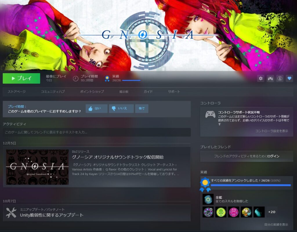 ゲーム自体は93時間のプレイ、累計したら650ループくらいしてるっぽい。遊んでない時は基本絵描いてたし頭の先まで沼に漬かってることには変わりないんだけど。